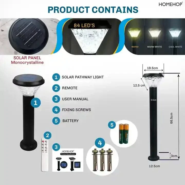 Eco-Friendly & Energy Efficient: Powered entirely by solar energy, this light helps reduce your electricity consumption while offering effective lighting for your garden and pathway. A sustainable solution for solar LED lamps and waterproof garden lights without increasing your energy bills.